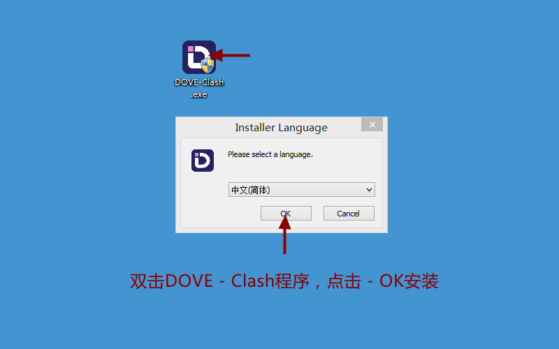 第2步:双击运行 - DOVE_2程序,点击 - OK进行安装(如图)
