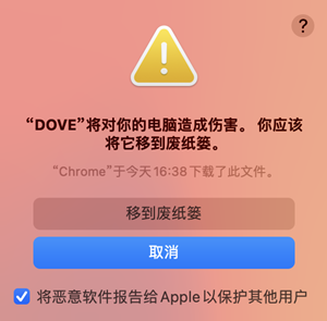 提示错误:将对您的电脑造成伤害,您应该将它移到废纸篓