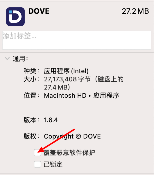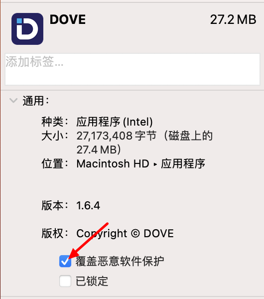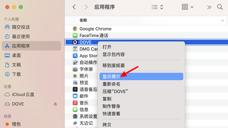 第1步:右键点击 - DOVE APP,选择 - 显示简介